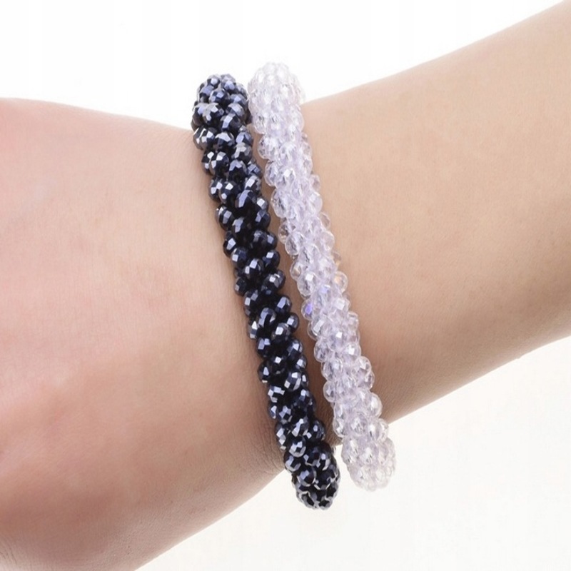 Opis: Piękna bransoletka wykonana z drobnych kryształków na gumce. Może również służyć jako ozdoba do włosów w formie gumki. Idealny pomysł na prezent.