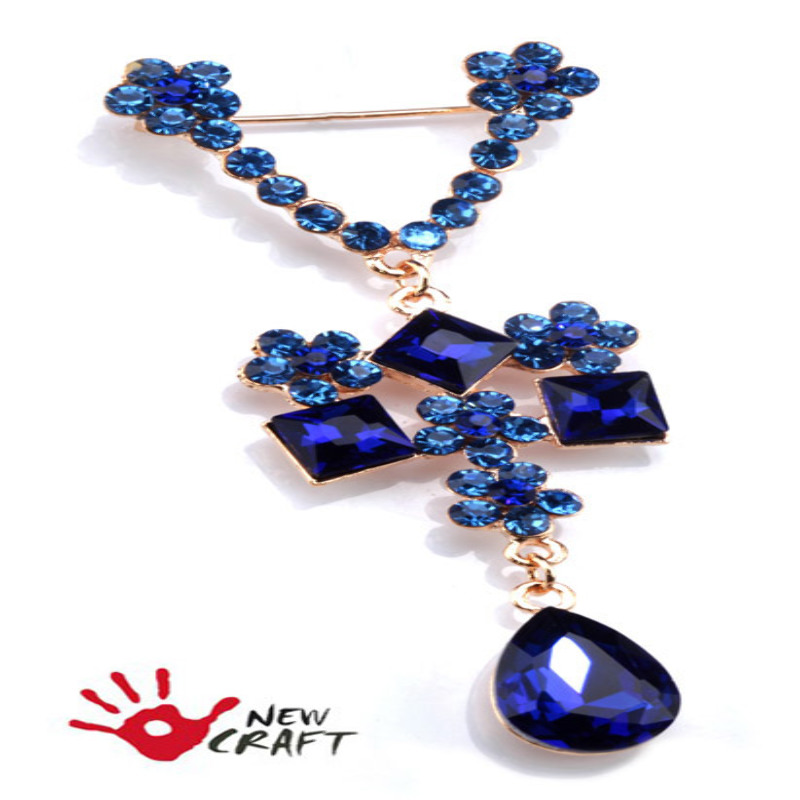 Piękna, klasyczna broszka wisząca w kolorze złota z cyrkoniami. Ozdoba zakończona solidnym zapięciem agrafka. Idealny pomysł na prezent, biżuteria gotowa. KOD TOWARU: ID - DS Wielkość kryształków: od 2,8mm do 18mm Kolory broszki: złoty Kolor kryształów: ciemna zieleń
