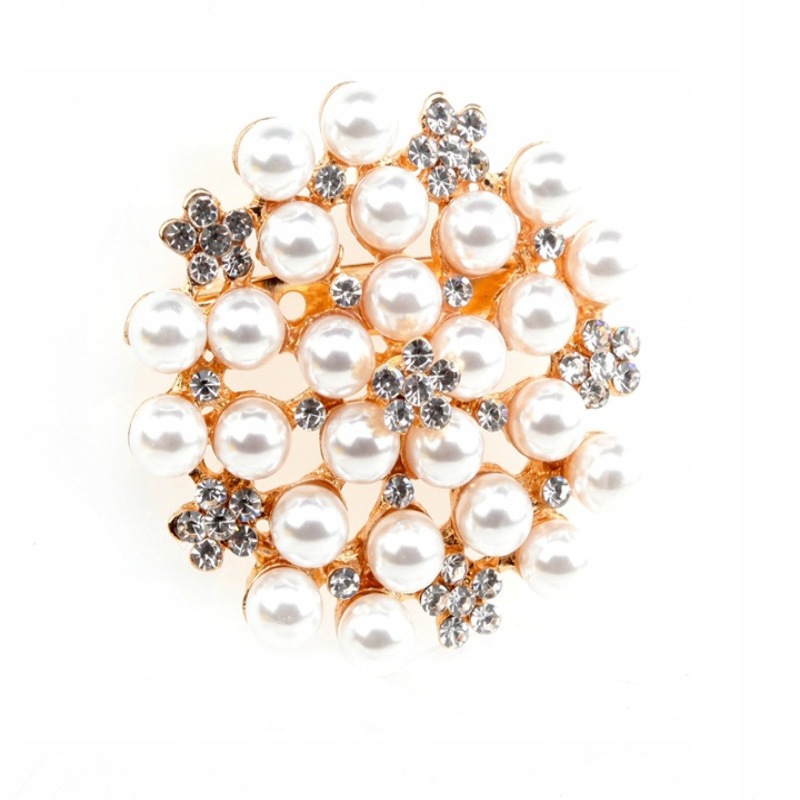 BROSZKA KLASYCZNA VINTAGE PERŁA ZŁOTA 48mm
