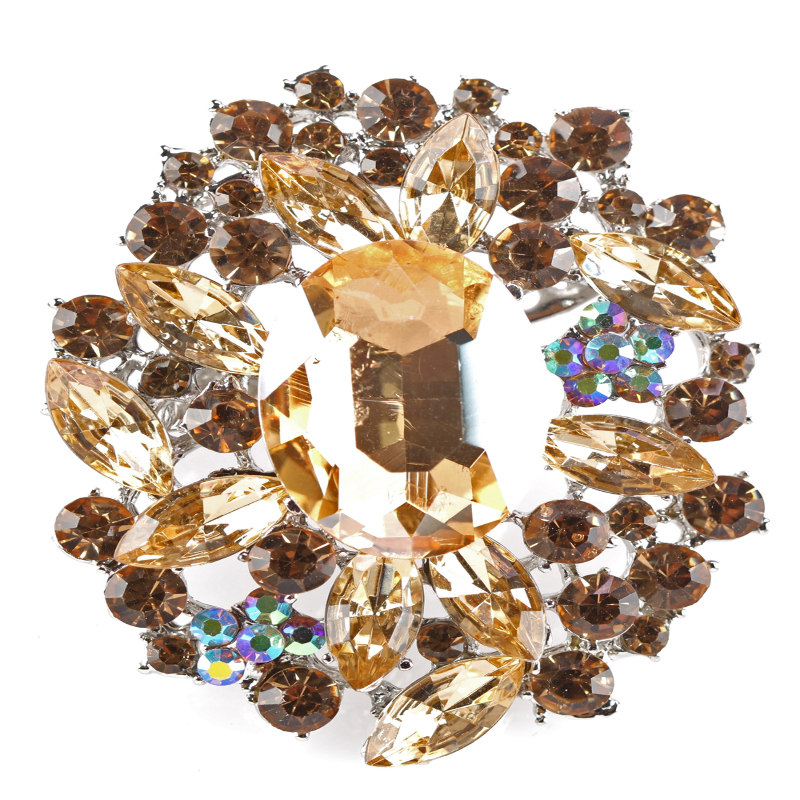 Broszka w stylu vintage, wzór owalu. Kawałki kryształowych kamieni w różnych kształtach.