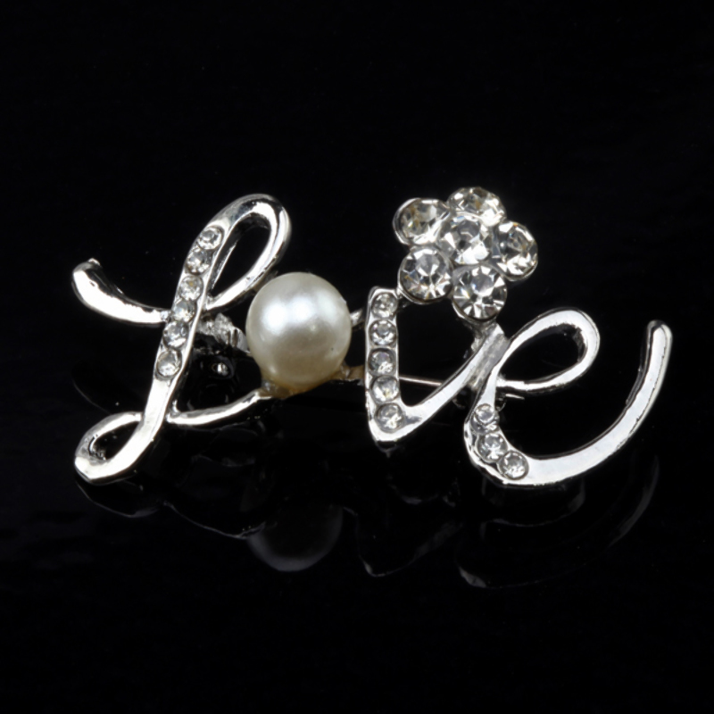 Broszka z centralnymi cyrkoniami i dodatkami w kształcie napisu LOVE.