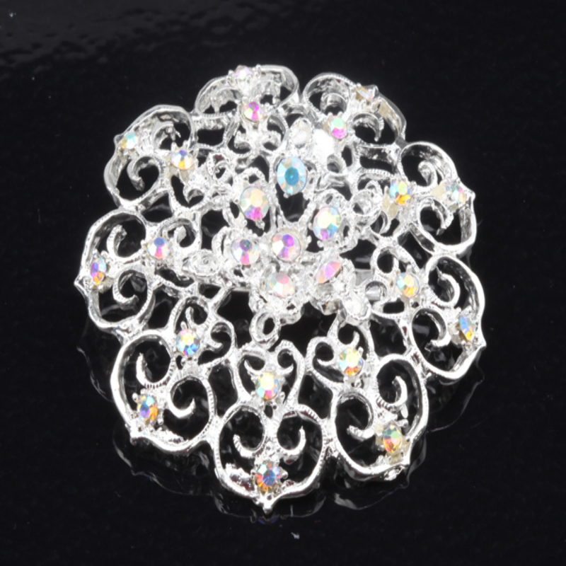 Piękna, klasyczna broszka z cyrkoniami wykonana w dwóch wzorach przedstawionych poniżej. Podstawa w kolorze jasnego srebra. Ozdoba zakończona solidnym zapięciem agrafka. Idealny pomysł na prezent, biżuteria gotowa. Rozmiar broszki: 34mm Rozmiar kryształów: od 2,5mm do 3,5mm Kolor kryształów: Bezbarwny KOD TOWARU: IDIOM