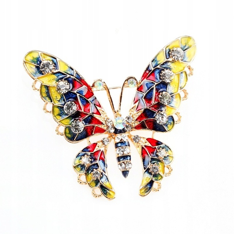 Rozmiar broszki: 55/41mm Rozmiar kryształów: od 1,5mm do 2mm Kolor kryształów: KOLOROWE Opis: Piękna, klasyczna broszka z podstawą w kolorze SREBRNYM. Ozdoba zakończone solidnym zapięciem agrafka. Idealny pomysł na prezent, biżuteria gotowa. KOD TOWARU: ID-MH