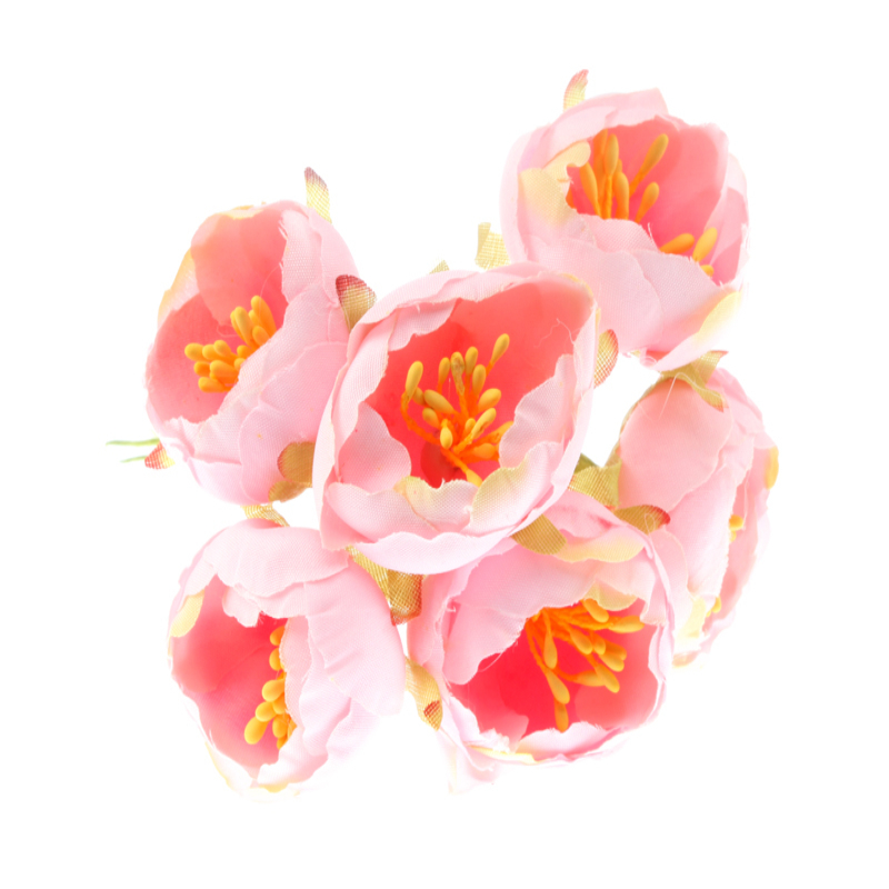 1 KOMPLET - 6 sztuk Długość ozdoby: 12cm ( +/- 1cm ) Wielkość kwiatuszka: ok. 4cm Kolor : CIEMNY RÓŻOWY Opis: Ozdobne KWIATUSZKI -PIWONIE. Piki idealnie nadają się do tworzenia kompozycji kwiatowych, ozdabiania styropianu, świec itp.. Produkt bardzo lekki!!