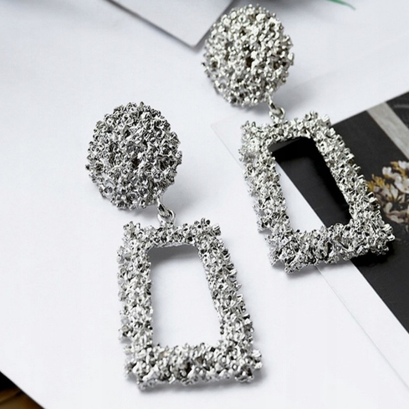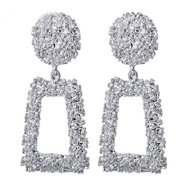 Opis: Długie kolczyki geometryczne w kolorze różowego złota, bigle typu sztyft. Biżuteria gotowa