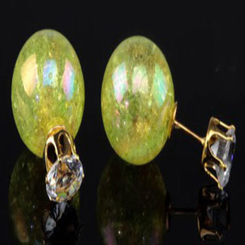 KOLCZYKI TRIBAL ze sztyftem zakończonym kryształkiem wykonane z KOLOROWEGO SPĘKANEGO AKRYLU (typu crackle) z błyszczącą powłoką na powierzchni. Kolczyki posiadają sztyfty metalowe w kolorze złota (BEZ NIKLU i OŁOWIU). Prawdziwy salonowy krzyk mody! Światowa moda na wyciągnięcie Twojej ręki.