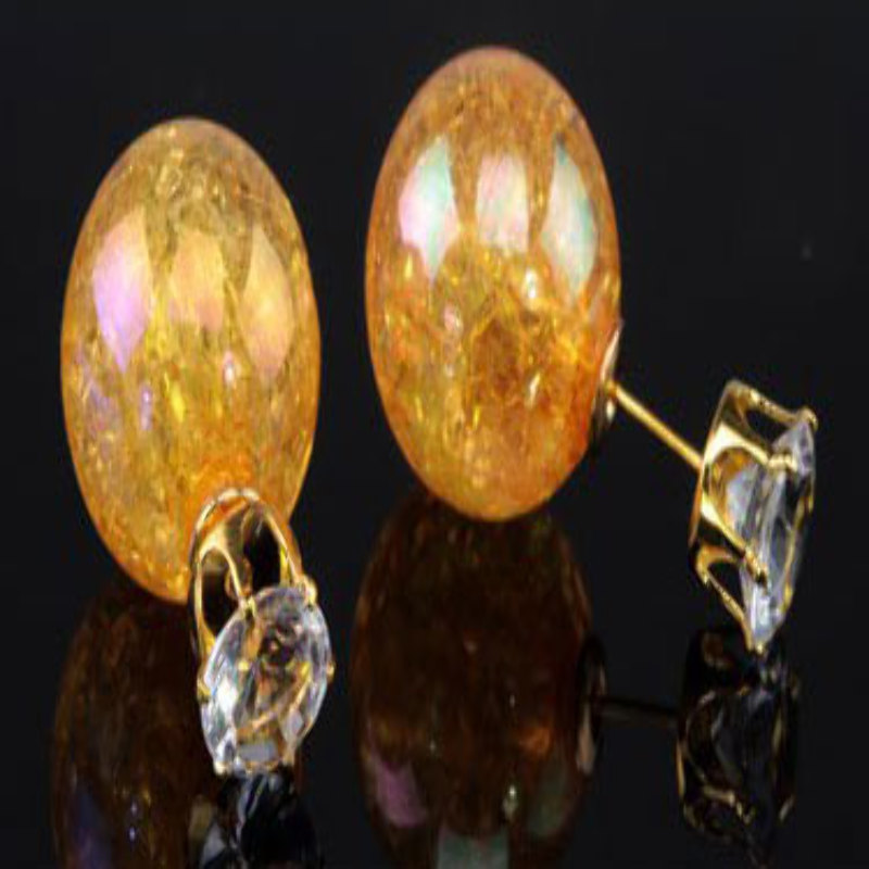 KOLCZYKI TRIBAL ze sztyftem zakończonym kryształkiem wykonane z KOLOROWEGO SPĘKANEGO AKRYLU (typu crackle) z błyszczącą powłoką na powierzchni. Kolczyki posiadają sztyfty metalowe w kolorze złota (BEZ NIKLU i OŁOWIU). Prawdziwy salonowy krzyk mody! Światowa moda na wyciągnięcie Twojej ręki.