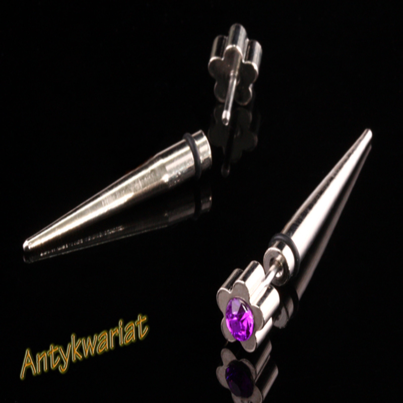 Modny OSZUKANY TUNEL (KOLCZYK) - PLUG - wykonany ze stali STALI CHIRURGICZNEJ typu 316L. Materiał jest ANTYALERGICZNY - nie zawiera NIKLU ani OŁOWIU! Element w kształcie KOLCA / KŁA. W ozdobie umieszczono kryształek FASETOWANY oraz KRĄŻEK z KAUCZUKU. Tunel posiada solidne, GWINTOWANE połączenie (skręcane - widoczne na zdjęciu). BIŻUTERIA GOTOWA! KOLOR: FIOLETOWY / CRISTAL (kryształki) KOD TOWARU: ID - KR