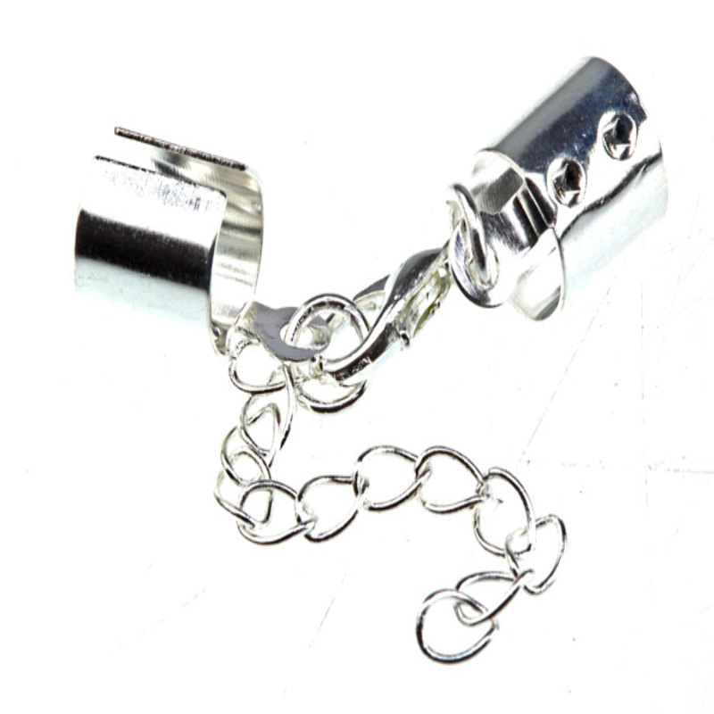 KOMPLET - Końcówki zaciskowe z zapięciem i przedłużką - do rzemieni lub sznurków o grubości 8mm, wykonane z metalu. Doskonałe uzupełnienie naszyjnika! PRODUKT ANTYALERGICZNY - NIE ZAWIERA NIKLU ANI OŁOWIU; do wyrobu biżuterii.