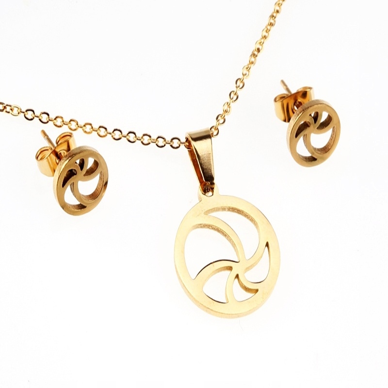 Zestaw złożony z naszyjnika i kolczyków, został wykonany ze stali szlachetnej 316L. Na łańcuszku łącznik w kształcie kokardy. Do kompletu kolczyki w kolorze złotym. Bardzo atrakcyjna cena do jakości. Stal chirurgiczna, jest stalą która ma najwyższe właściwości antykorozyjne. Wykorzystywana w wielu dziedzinach życia, ostatnio robi furorę w gotowej biżuterii oraz półproduktach do wyrobu biżuterii. Wielkość kolczyków: 7x11mm Grubość: 2mm Długość sztyftu: 9mm Długość łańcuszka: 48mm Wielkość zawieszki: 23x16mm Kolor: ZŁOTY KOD TOWARU: ID DS