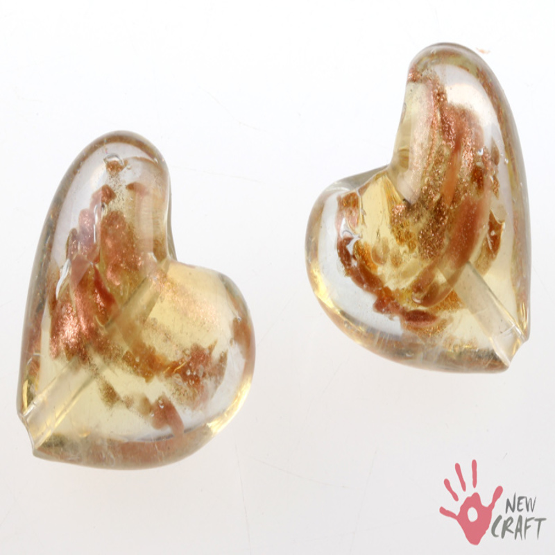 Bardzo ładne szkło weneckie w kształcie serce; do wyrobu biżuterii. KOLOR: MIODOWY / ZŁOTY PIASEK
