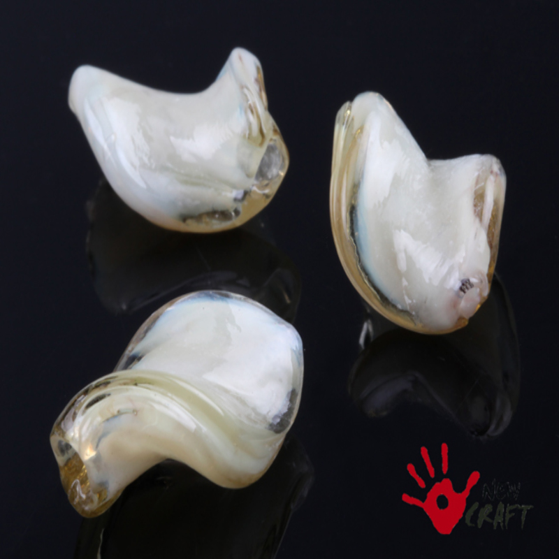 Bardzo ładne szkło weneckie, w kształcie SERCA, każda sztuka różni się od siebie wzorem, serca dobierane losowo; do wyrobu biżuterii. KOLOR: MIODOWY