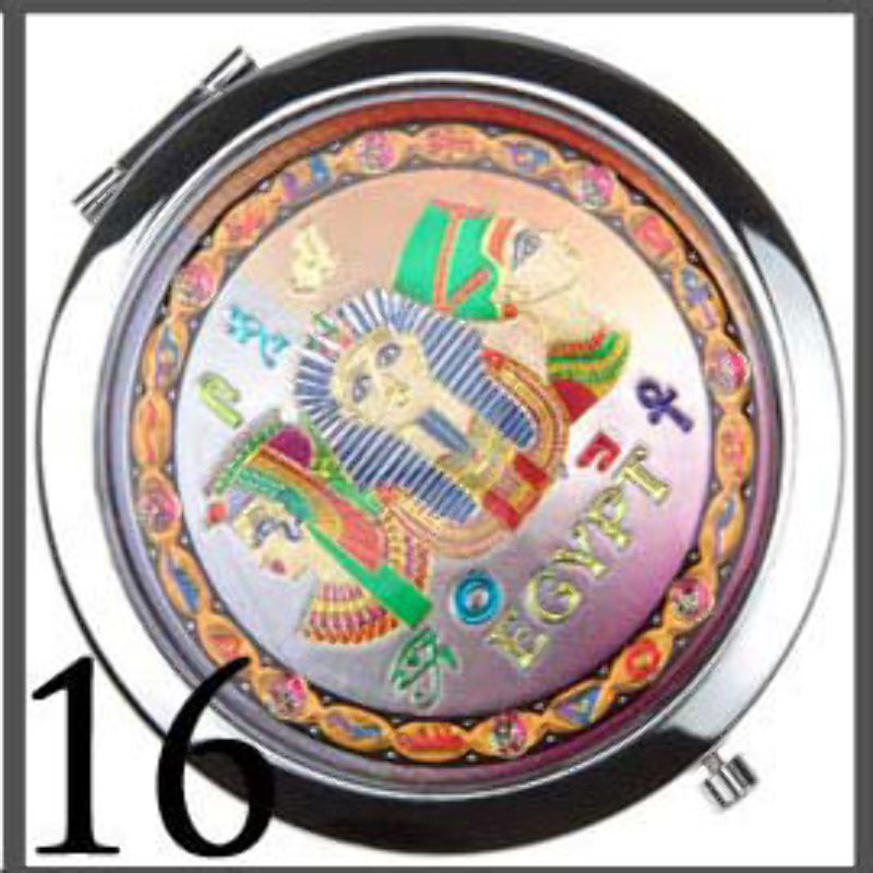 Stylowe kompaktowe PODWÓJNE LUSTERKO - wykonane ze stali (zamykane na automatyczny zatrzask) z pięknym i modnym wzorem na przodzie (motyw przewodni - EGIPT). Po otwarciu na dolnej stronie znajdziesz lusterko POWIĘKSZAJĄCE. UNIKAT! - piękny i niezbędny przedmiot, idealny do każdej kobiecej torebki! Elegancja w doskonałej cenie!