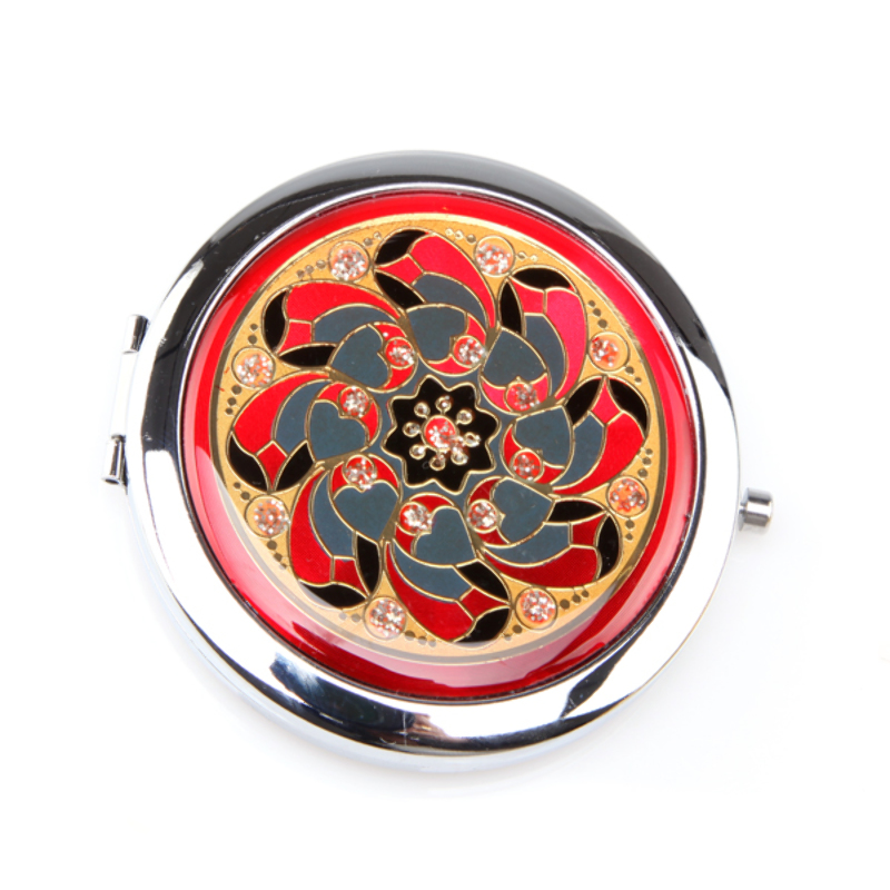 Stylowe kompaktowe PODWÓJNE LUSTERKO - wykonane ze stali (zamykane na automatyczny zatrzask) z pięknym i modnym wzorem na przodzie (motyw przewodni - EGIPT). Po otwarciu na dolnej stronie znajdziesz lusterko POWIĘKSZAJĄCE. UNIKAT! - piękny i niezbędny przedmiot, idealny do każdej kobiecej torebki! Elegancja w doskonałej cenie!