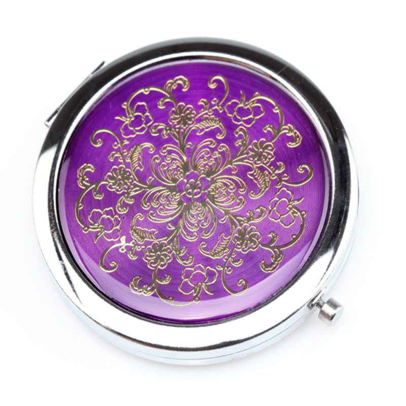 Stylowe kompaktowe PODWÓJNE LUSTERKO - wykonane ze stali ( zamykane na automatyczny zatrzask ) z pięknym i modnym wzorem na przodzie. Po otwarciu na dolnej stronie znajdziesz lusterko POWIĘKSZAJĄCE. UNIKAT! - piękny i niezbędny przedmiot, idealny do każdej kobiecej torebki! Elegancja w doskonałej cenie! KOLOR: FIOLETOWY KOD TOWARU: IDIOM