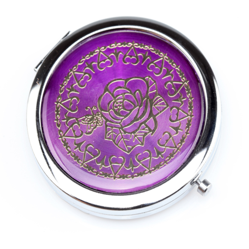 Stylowe kompaktowe PODWÓJNE LUSTERKO - wykonane ze stali ( zamykane na automatyczny zatrzask ) z pięknym i modnym wzorem na przodzie. Po otwarciu na dolnej stronie znajdziesz lusterko POWIĘKSZAJĄCE. UNIKAT! - piękny i niezbędny przedmiot, idealny do każdej kobiecej torebki! Elegancja w doskonałej cenie!