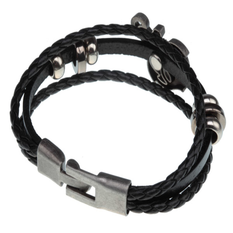 Opis:  Bardzo ładna bransoletka męska wykonana z rzemienia z elementem ozdobnym (kwiat lilii) zamieszczonym centralnie oraz zapięciem w kolorze ciemnego srebra - wysoka jakość i modny wzór. Biżuteria gotowa.