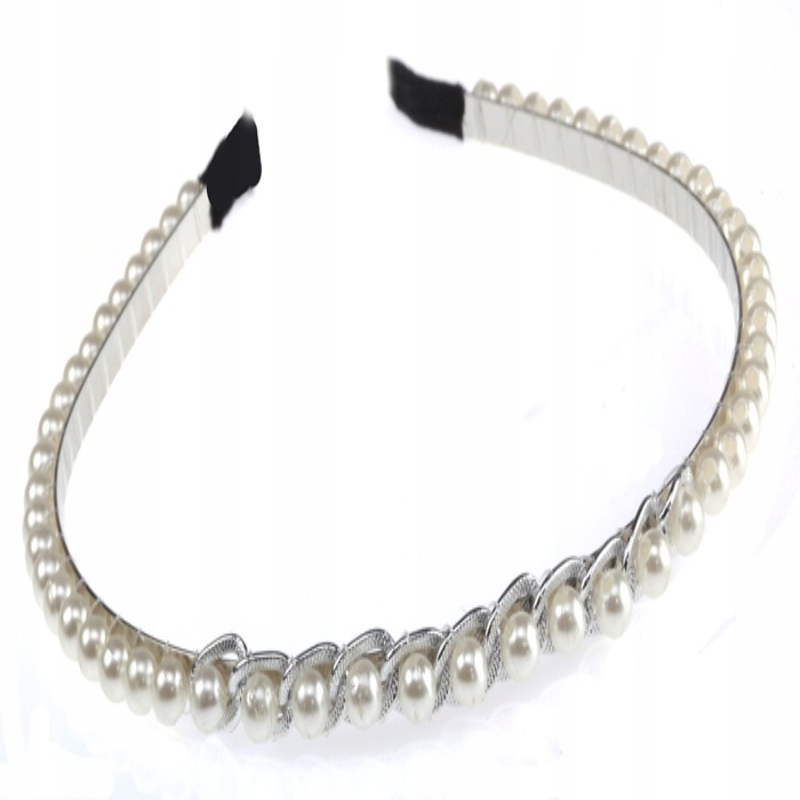 Opaska zdobiona białymi perełkami.