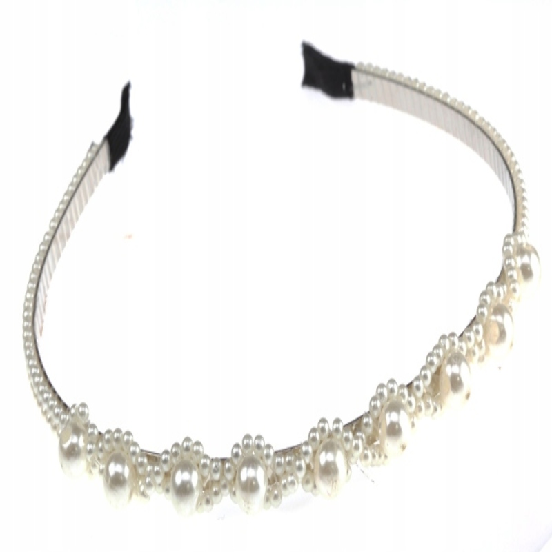 Opaska zdobiona białymi perełkami.