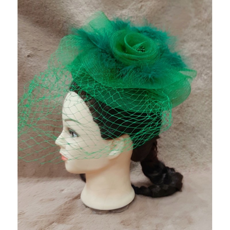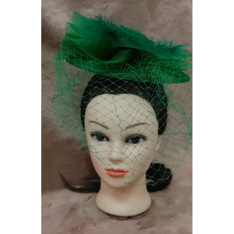 Zielony fascynator z woalką i piórami – szyk i elegancja na każdą okazję!