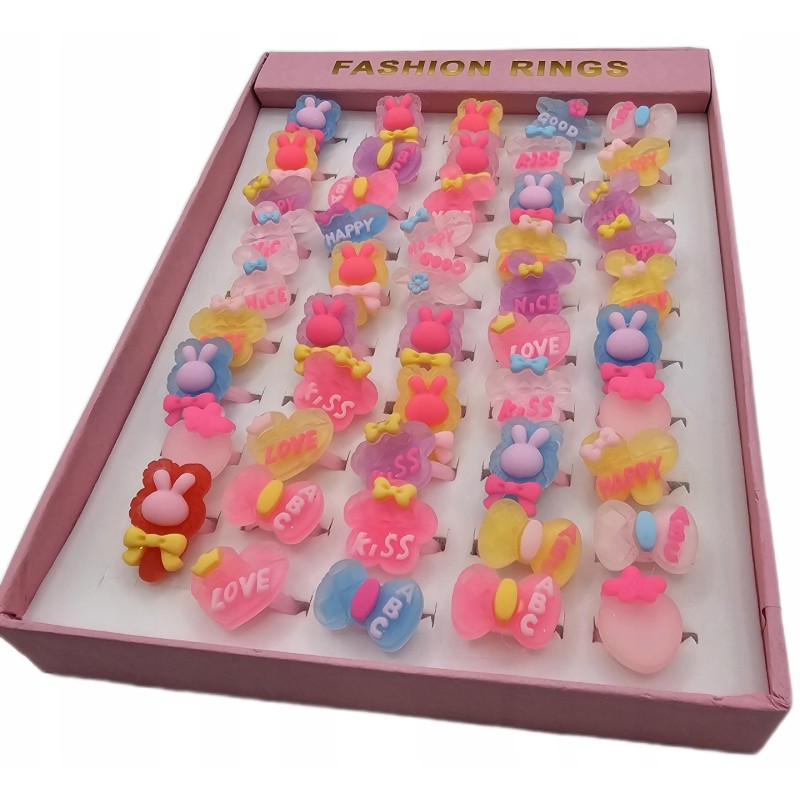 BG4500 PIERŚCIONKI DLA DZIEWCZYNKI ZESTAW 50szt