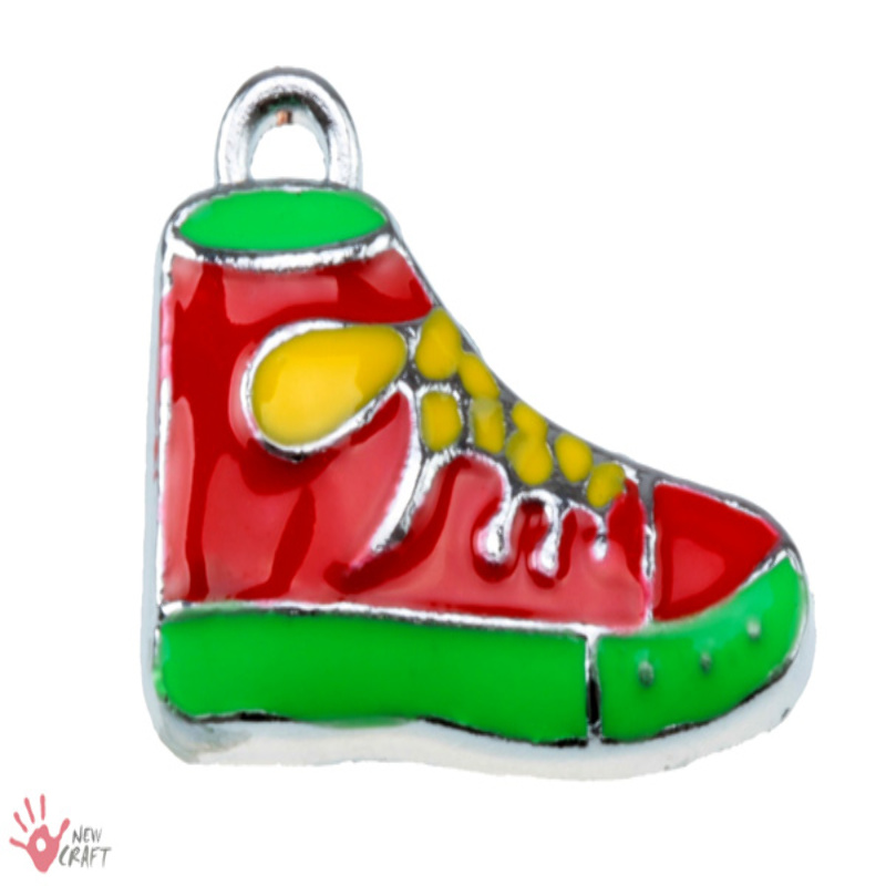 Bardzo ładny element ozdobny - jednostronny - CHARMS w kształcie BUTA. Element jest w kolorze SREBRNYM, z kolorową emalią na powierzchni. Zawieszka może służyć jako CHARMS, wystarczy tylko dołączyć zapięcie np. karabińczyk! Produkt nie zawiera niklu ani ołowiu - antyalergiczny! KOLOR CZERWONY/ZIELONY/ŻÓŁTY