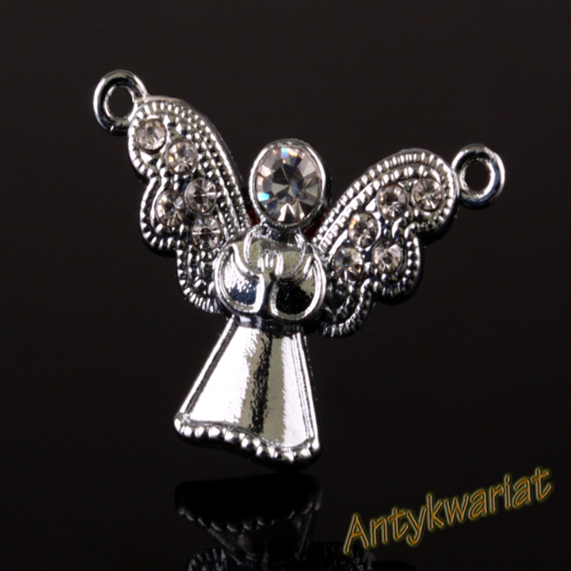 Bardzo ładny element ozdobny - jednostronny - łącznik - w formie anioła. Element jest w kolorze srebra z błyszczącymi kryształkami - do zawieszki wystarczy dołączyć zapięcie np. karabińczyk. Produkt nie zawiera niklu ani ołowiu - antyalergiczny! KOLOR SREBRNY