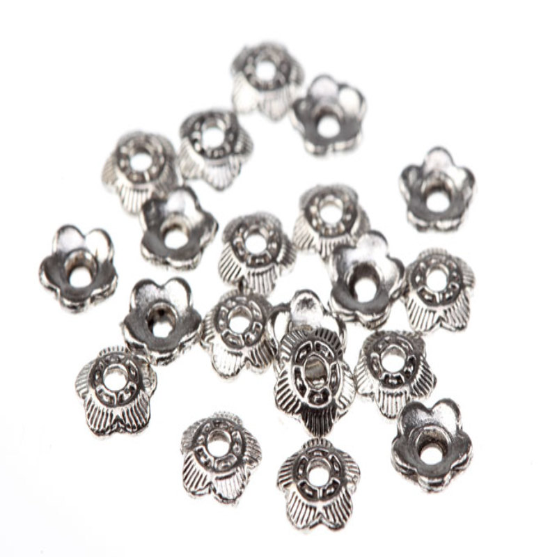 Przekładka w formie czapeczki wykonana ze stopu metali, nie zawierających niklu. Kształt kwiatuszka, idealnie nadaje się do zdobienia biżuterii.