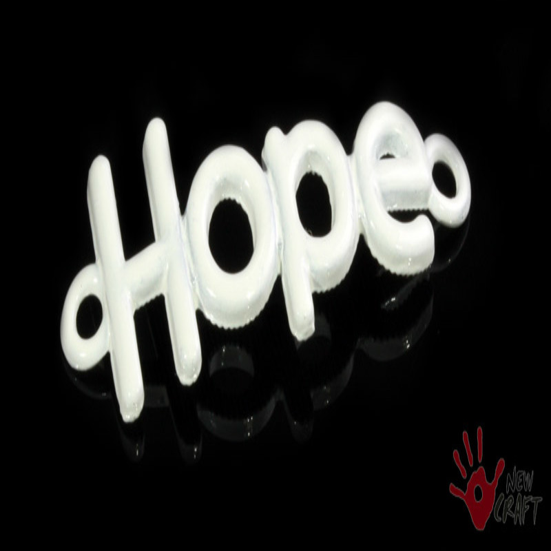 ELEMENT OZDOBNY EMALIOWANY KORALIK - ŁĄCZNIK w kształcie napisu HOPE. Doskonale pasuje jako łącznik do BRANSOLETKI SHAMBALLA. Umieszczone po bokach dwa kółeczka montażowe pozwalają na łatwe połączenie z nośnikiem. Do wyrobu biżuterii.