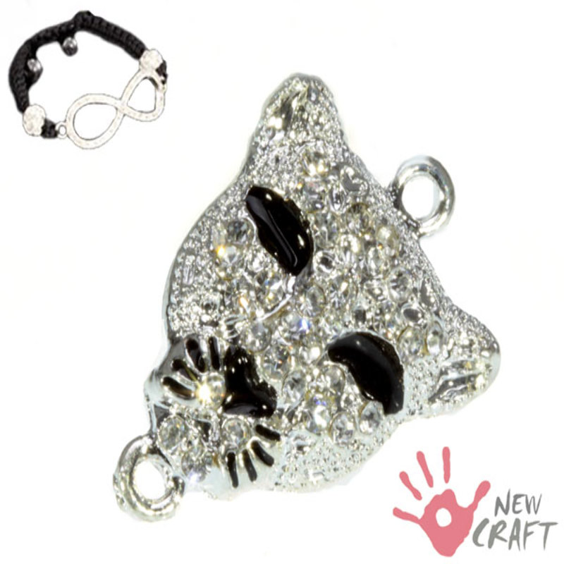 ELEMENT OZDOBNY - ŁĄCZNIK w kształcie GŁOWY PANTERY. Doskonale pasuje jako łącznik do BRANSOLETKI SHAMBALLA. Na powierzchni znajdują się błyszczące KRYSZTAŁKI. Umieszczone po bokach łącznika DWA KÓŁECZKA MONTAŻOWE pozwalają na dyskretne i eleganckie połączenie z nośnikiem. PRODUKT ANTYALERGICZNY - NIE ZAWIERA NIKLU ANI OŁOWIU; do wyrobu biżuterii. (UWAGA!: Umieszczona na zdjęciu miniaturka bransoletki służy jedynie pokazaniu przykładu wykorzystania podobnego elementu i nie podlega sprzedaży!)