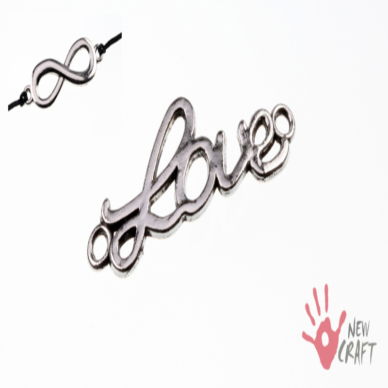 ELEMENT OZDOBNY BALI - ŁĄCZNIK - LOVE, PRODUKT ANTYALERGICZNY - NIE ZAWIERA NIKLU ANI OŁOWIU; do wyrobu biżuterii. (UWAGA!: Umieszczona na zdjęciu miniaturka bransoletki służy jedynie pokazaniu przykładu wykorzystania podobnego elementu i nie podlega sprzedaży!)