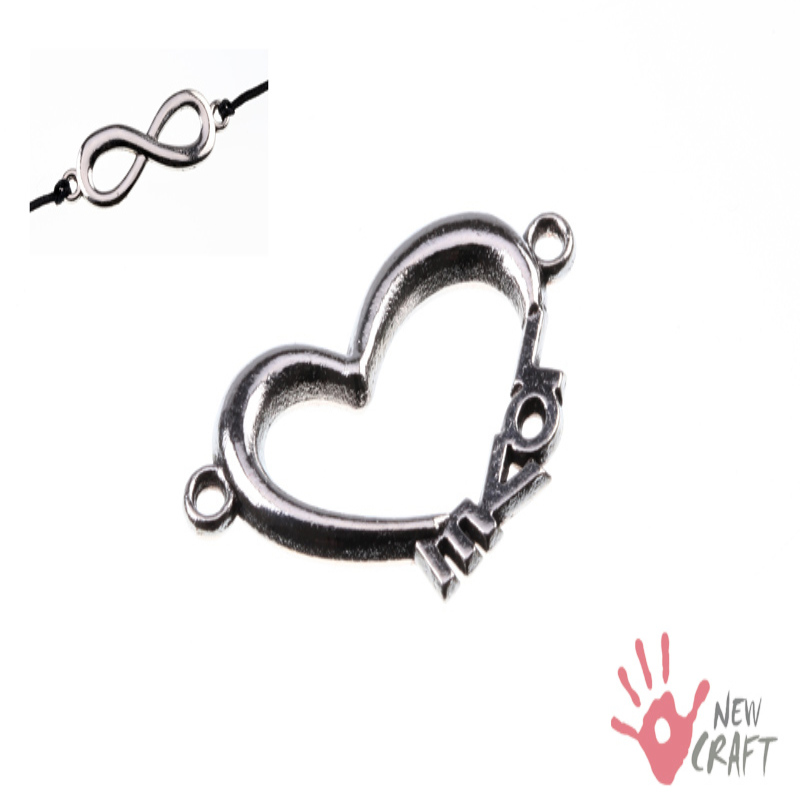 ŁĄCZNIK OZDOBNY w kształcie SERCA. Doskonale pasuje jako łącznik do BRANSOLETKI SHAMBALLA. Na powierzchni znajdują się błyszczące KRYSZTAŁKI. Umieszczone na bokach dwa kółeczka montażowe pozwalają na połączenie z nośnikiem. PRODUKT ANTYALERGICZNY - NIE ZAWIERA NIKLU ANI OŁOWIU; do wyrobu biżuterii. Kolor elementu: SREBRNY KOD TOWARU: J1 KR