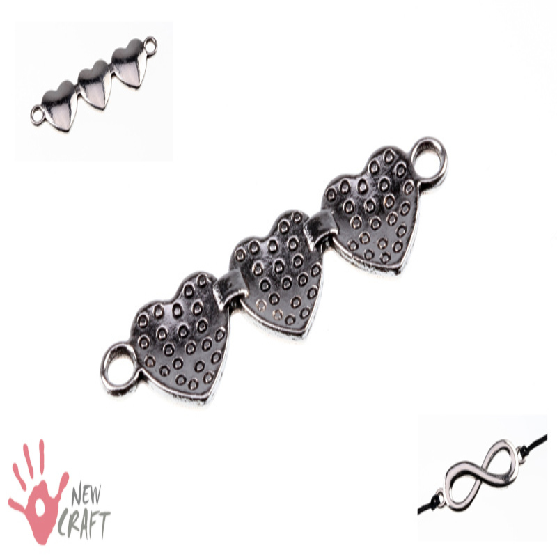 ELEMENT OZDOBNY BALI - ŁĄCZNIK - SERCE- DWUSTRONNE, PRODUKT ANTYALERGICZNY - NIE ZAWIERA NIKLU ANI OŁOWIU; do wyrobu biżuterii. (UWAGA!: Umieszczona na zdjęciu miniaturka bransoletki służy jedynie pokazaniu przykładu wykorzystania podobnego elementu i nie podlega sprzedaży!)