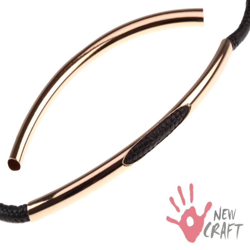 Element ozdobny RURKA DYSTANSOWA GŁADKA w kształcie ŁUKU z PODŁUŻNYM OTWOREM NA RZEMIEŃ (widocznym na zdjęciu). Produkt świetnie nadaje się jako przekładka do RZEMIENIA. Doskonały dodatek np. w naszyjniku. Produkt przeznaczony do wyrobu biżuterii. Wyrób ANTYALERGICZNY - nie zawiera niklu ani ołowiu. UWAGA!: Widoczny na zdjęciu rzemień służy jedynie zaprezentowaniu przykładu użycia rurki i nie jest przedmiotem sprzedaży!