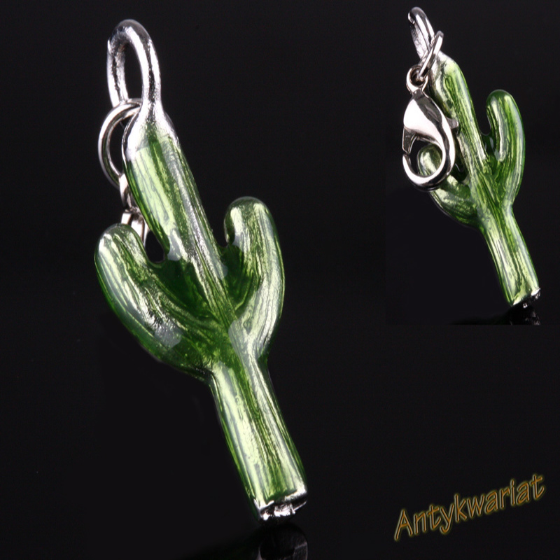 Bardzo ładny element ozdobny - ZAWIESZKA CHARMS MAX 3D - MAKSYMALNY TRÓJWYMIAR - w kształcie KAKTUSA . Element jest w kolorze SREBRNYM, częściowo pokryty KOLOROWĄ EMALIĄ. Zawieszka posiada zapięcie - KARABIŃCZYK - dobrze ukazane w miniaturce w rogu zdjęcia! Produkt nie zawiera niklu ani ołowiu - antyalergiczny! KOLOR: SREBRNY / ZIELONY