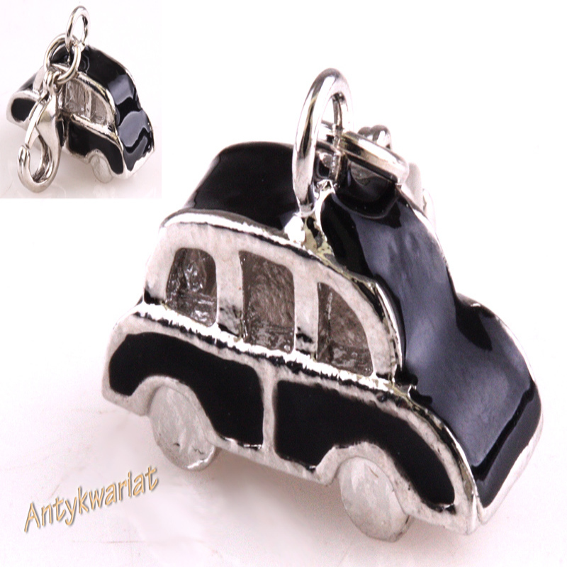 Bardzo ładny element ozdobny - ZAWIESZKA CHARMS MAX 3D - MAKSYMALNY TRÓJWYMIAR - w kształcie SAMOCHODU . Element jest w kolorze SREBRNYM, częściowo pokryty KOLOROWĄ EMALIĄ . Zawieszka posiada zapięcie - KARABIŃCZYK - widoczne na zdjęciu! Produkt nie zawiera niklu ani ołowiu - antyalergiczny! KOLOR: SREBRNY / CZARNY