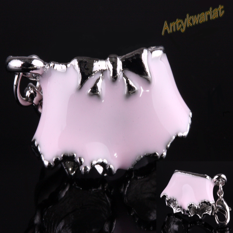 Bardzo ładny element ozdobny - ZAWIESZKA CHARMS MAX 3D - MAKSYMALNY TRÓJWYMIAR - w kształcie DAMSKICH SZORTÓW . Element jest w kolorze SREBRNYM, częściowo pokryty KOLOROWĄ EMALIĄ. Zawieszka posiada zapięcie - KARABIŃCZYK - dobrze ukazane w miniaturce w rogu zdjęcia! Produkt nie zawiera niklu ani ołowiu - antyalergiczny! KOLOR: SREBRNY / RÓŻOWY