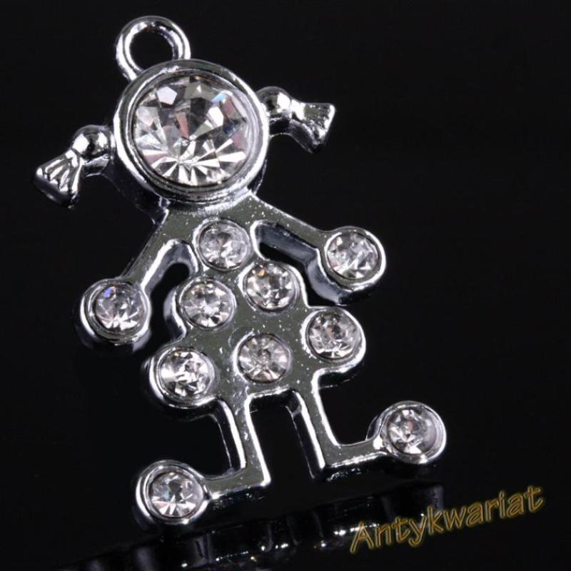 Śliczna ZAWIESZKA - CHARMS (jednostronna) - kształt DZIEWCZYNKI. Element jest w kolorze SREBRNYM, z błyszczącymi kryształkami na powierzchni. Zawieszka służy jako ZAWIESZKA MODUŁOWA CHARMS po dołączeniu zapięcia - np. karabińczyk! Produkt nie zawiera niklu ani ołowiu - ANTYALERGICZNY! KOLOR: SREBRNY