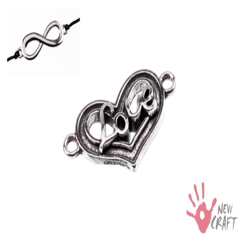 ELEMENT OZDOBNY BALI - ŁĄCZNIK - LOVE, PRODUKT ANTYALERGICZNY - NIE ZAWIERA NIKLU ANI OŁOWIU; do wyrobu biżuterii. (UWAGA!: Umieszczona na zdjęciu miniaturka bransoletki służy jedynie pokazaniu przykładu wykorzystania podobnego elementu i nie podlega sprzedaży!) KOLOR: SREBRNY KOD TOWARU:J1-MB