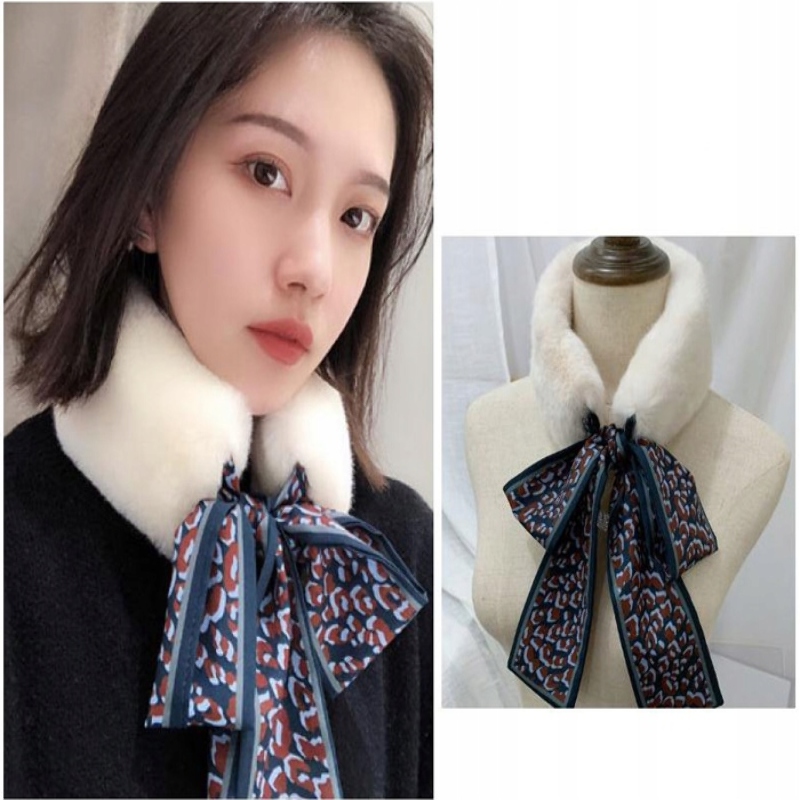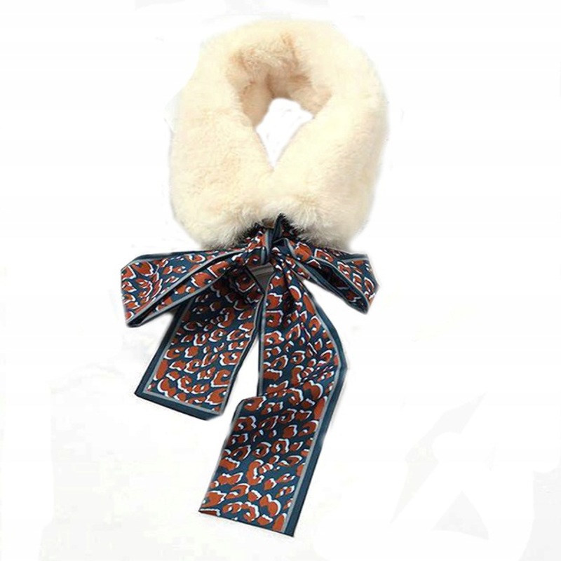 Szal , etola - królicze futerko połączone z satynową wstążką.