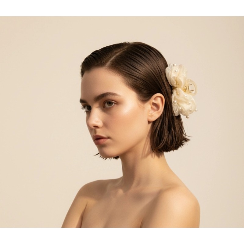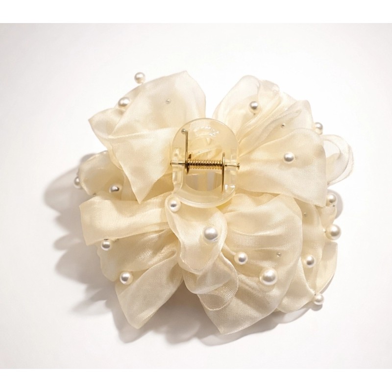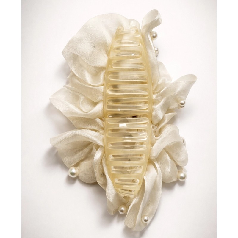 SP13 SPINKA KLAMRA DO WŁOSÓW DUŻA SZCZĘKA PEREŁKI 12,5cm KREMOWY