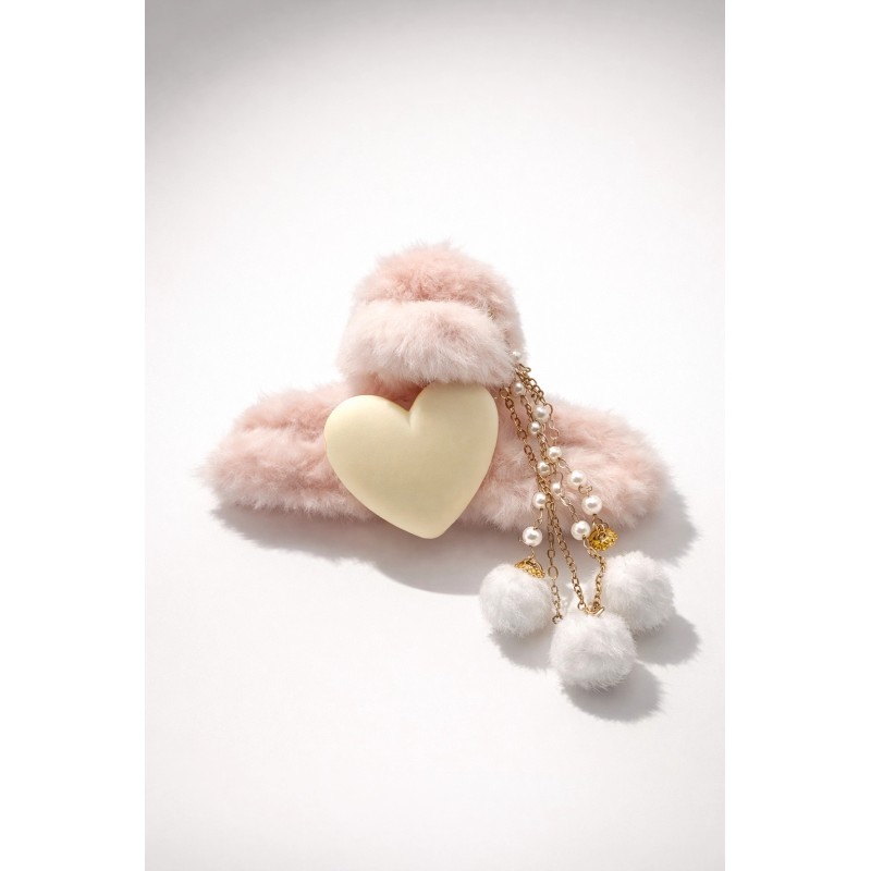 SP21 SPINKA KLAMRA DO WŁOSÓW SZCZĘKA SERCE FUTERKO 11cm RÓŻ