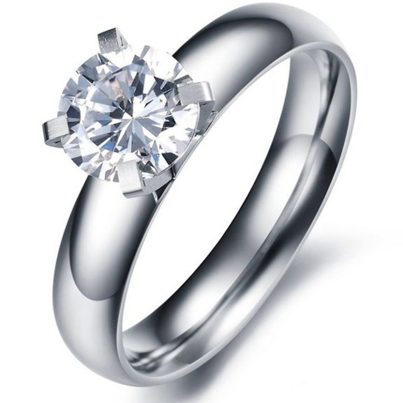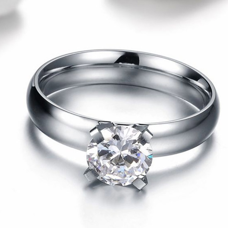 Pierścionek wykonany ze stali szlachetnej 316L, z cyrkonią.
