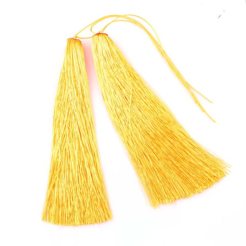 Elegancki i efektowny chwost ze zdobieniami. Bardzo długi, idealnie nada się jako element biżuterii jak i część dekoracji w domu. Chwost posiada dodatkowe sznurki na samej górze, które umożliwią montaż. Produkt sprzedawany pojedynczo, cena za jedną sztukę. Kolory: ŻÓŁTY Grubość chwosta: ok 14mm DŁUGOŚĆ: 17,5cm KOD TOWARU: ID IOM