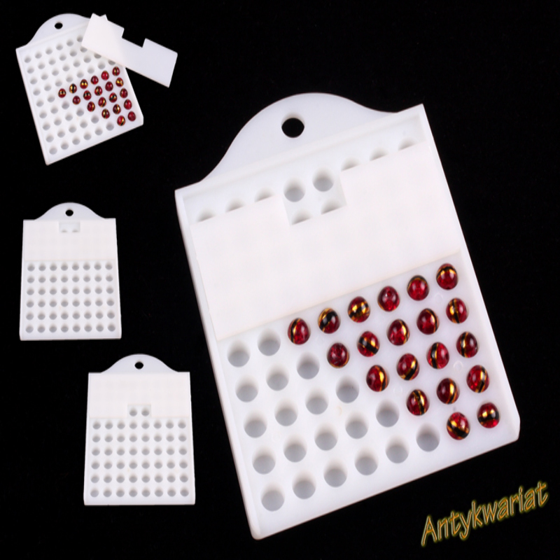 DESKA DO LICZENIA KORALIKÓW o wielkości - 8mm - wykonana z trwałego, grubego plastiku. Na desce znajdują się aż 72 otwory mieszczące koraliki. W zestawie znajduje się również wsuwana w deskę ZAŚLEPKA, która pozwala ograniczyć ilość otworów do np. 48 - widoczne na zdjęciu. Doskonała pomoc w dzieleniu większej ilości półfabrykatów biżuteryjnych i nie tylko! (UWAGA!: Przedstawione na zdjęciu koraliki służą jedynie pokazaniu przykładu użycia deski i nie są przedmiotem sprzedaży!) KOLOR: JASNY KREMOWY