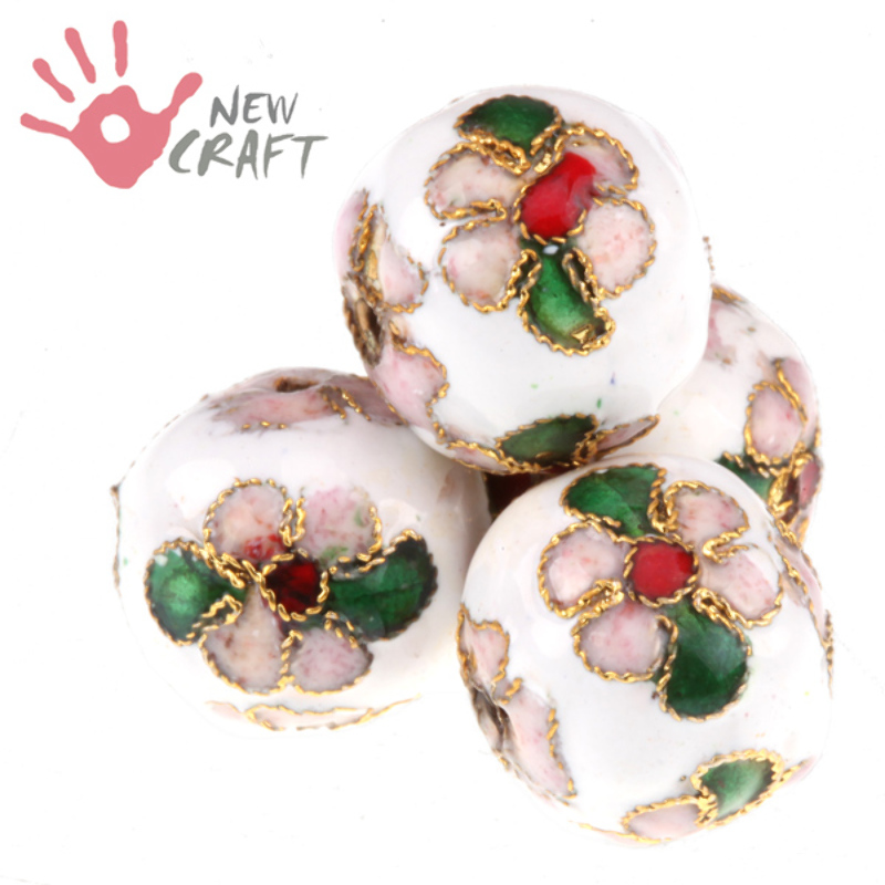Koraliki cloisonne ręcznie zdobione w kształcie kuli.