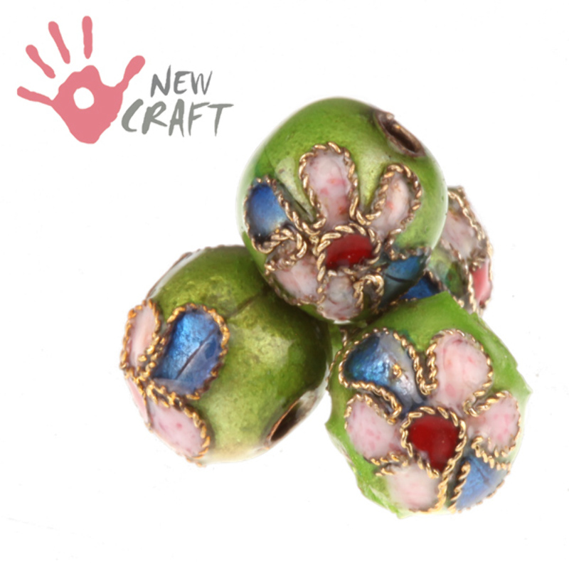 Koraliki cloisonne ręcznie zdobione w kształcie kuli.