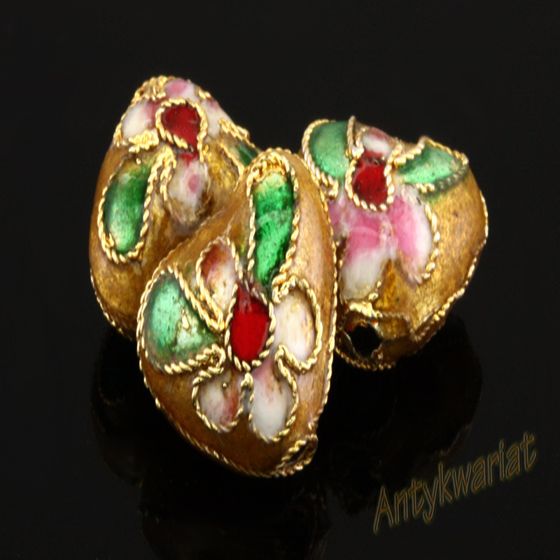Koraliki cloisonne ręcznie zdobione w kształcie SERCA.