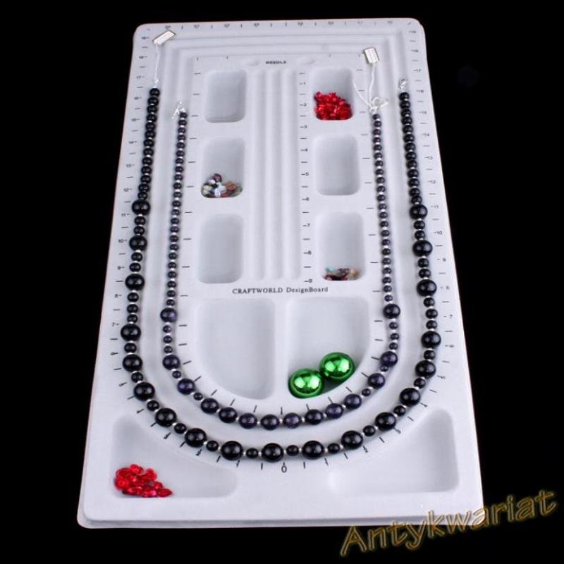 Wielofunkcyjna PODSTAWKA DO PROJEKTOWANIA BIŻUTERII Z PODZIAŁKĄ (w calach). Zawiera aż 10 wnęk na materiały oraz długie rowki pomocne w robieniu korali, naszyjników, wisiorów, czy też kolczyków. Podstawka wykonana jest z pokrytego antypoślizgowym pluszem plastiku. (UWAGA: Przedstawione na zdjęciu półfabrykaty oraz naszyjniki, służą jedynie zaprezentowaniu wariantów wykorzystania podstawki i nie podlegają sprzedaży!) Doskonała pomoc w pracy dla Ciebie! KOLOR: POPIELATY