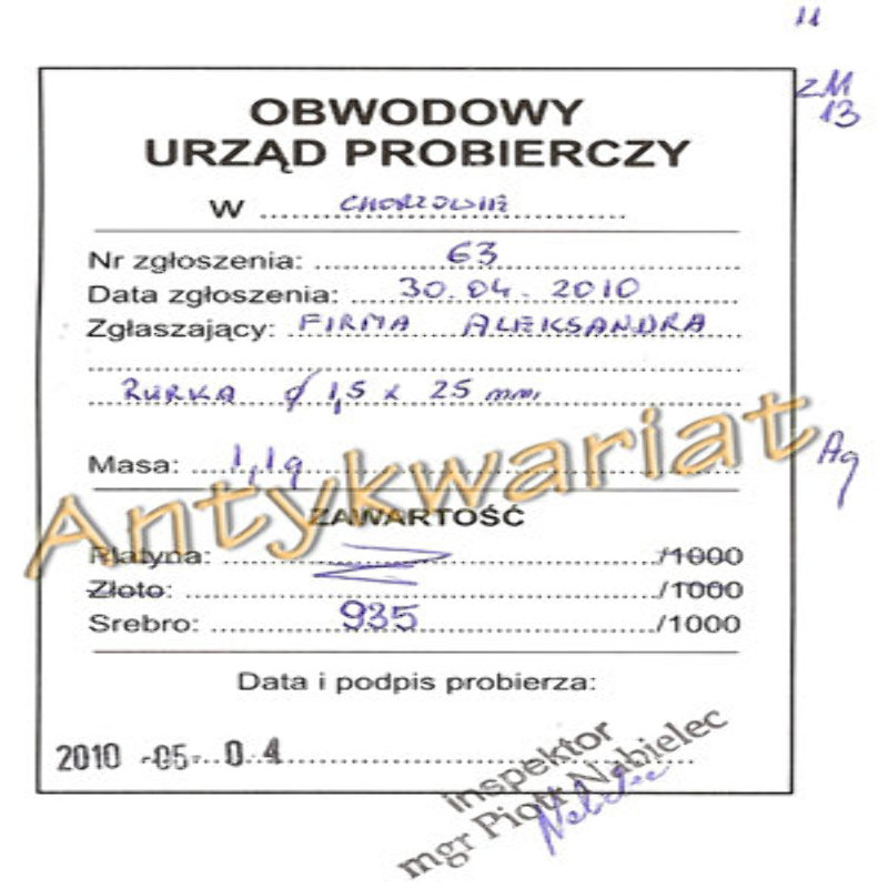 Element ze SREBRA o próbie 937 (próba poświadczona przez URZĄD PROBIERCZY - skan widoczny na zdjęciu) - RURKA DYSTANSOWA - PROSTA. Do wyrobu biżuterii. KOLOR: JASNY SREBRNY